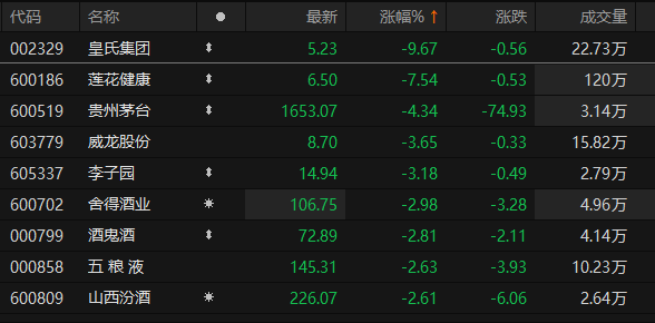 A股食品饮料板块震荡走低 贵州茅台跌超4%