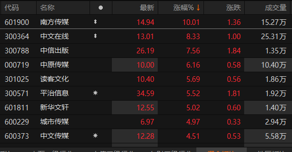 数字阅读概念板块领涨 南方传媒涨停