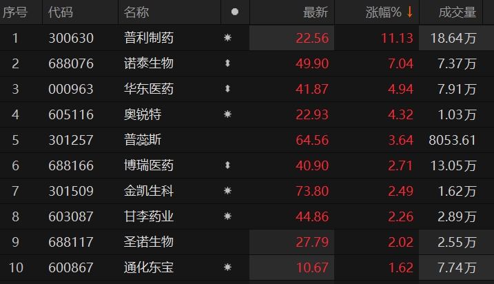 减肥药板块走强 普利制药涨超10%