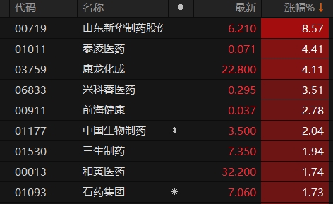 港股药品股早盘震荡上行 山东新华制药股份涨超8%