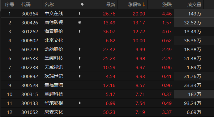 A股传媒板块大涨超3% 板块内多股涨停