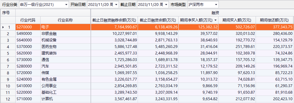 昨日融资资金净买入81.2亿元 电子行业净买入12.54亿元