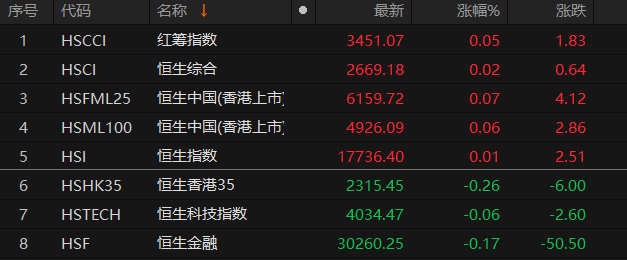 恒生指数开盘涨0.01% 恒生科技指数跌0.06%