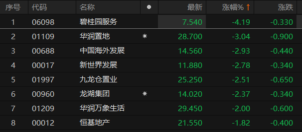 港股地产股表现疲弱 碧桂园服务跌逾4%
