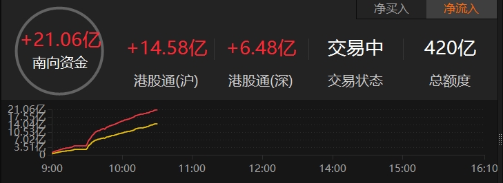 南向资金净流入超20亿港元
