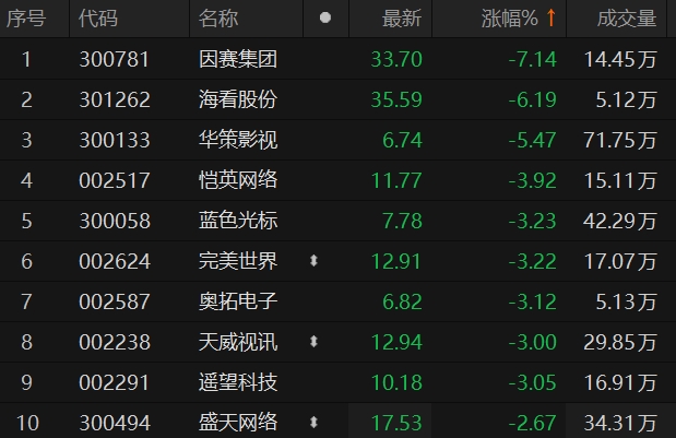短剧互动概念股震荡回落 因赛集团跌超7%