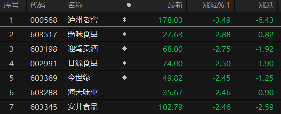 A股食品饮料板块领跌 多股跌超2%