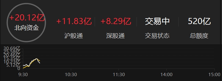 北向资金净流入超20亿元