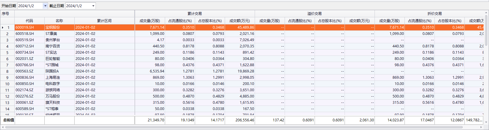 上证报中国证券网讯 据Choice数据统计,1月2日,沪深京三市场47只个股发生103笔大宗交易,共成交20.66亿元。其中,沪市23只个股共57笔大宗交易,总成交额为8.76亿元;深市18只个股共38笔大宗交易,总成交额为11.61亿元;京市6只个股发生8笔大宗交易,总成交额为0.29亿元。