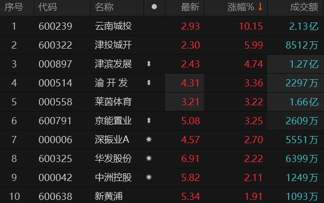上证报中国证券网讯 1月5日,房地产板块异动拉升,截至9时55分,云南城投涨停,津投城开涨近6%,渝开发、京能置业等跟涨。