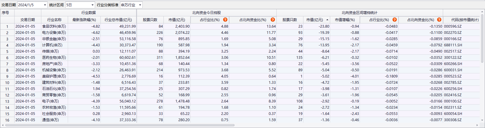 上周北向资金加仓前三行业为银行、公用事业、煤炭