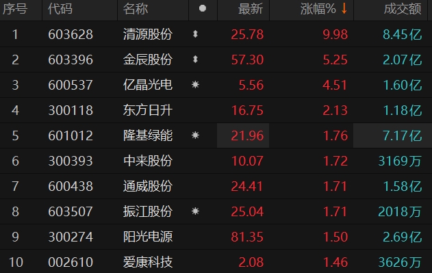 光伏板块拉升 清源股份涨停