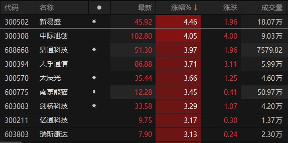 A股通信板块表现活跃 多股涨超3%