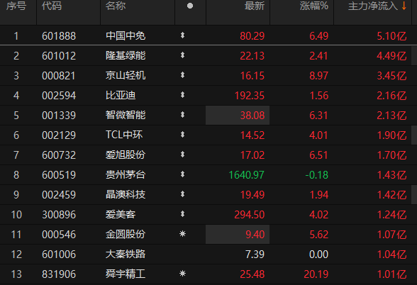 13只个股主力资金净流入额超1亿元 中国中免超5亿元居首