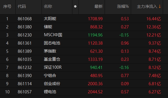 主力资金净流入A股太阳能等概念板块