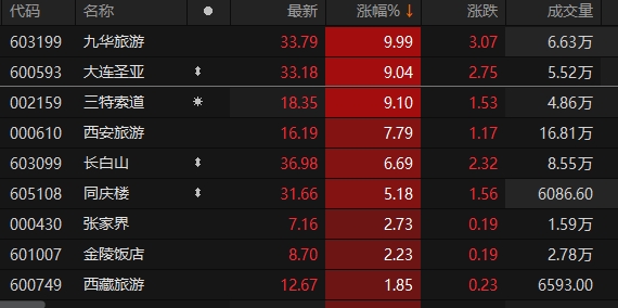 A股社会服务板块开盘拉升 九华旅游涨停