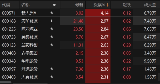 A股煤炭板块震荡上行 新大洲A涨超4%