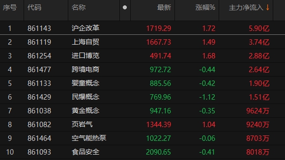 上证报中国证券网讯 据Choice金融终端数据,1月24日11时06分,在A股概念板块中,沪企改革、上海自贸及进口博览板块的主力资金净流入额位居前三。
