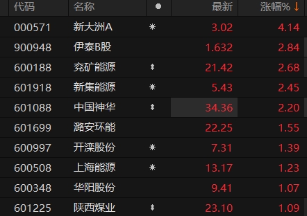 A股煤炭板块震荡走强 新大洲A涨超4%