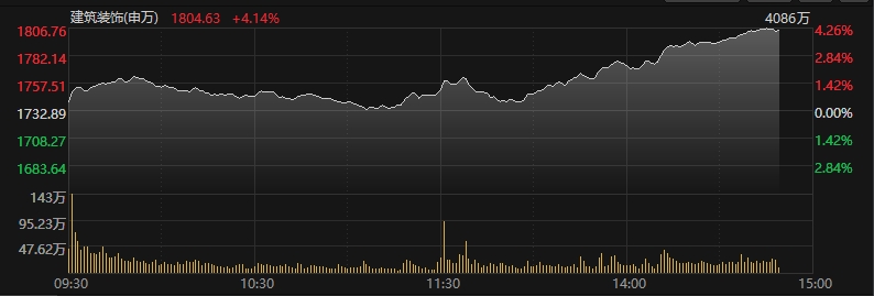 申万一级建筑装饰板块涨超4%
