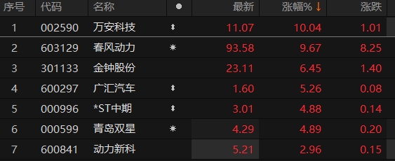 上证报中国证券网讯 1月31日早盘,申万一级行业板块中,汽车板块震荡走高。截至9时41分,万安科技涨停,春风动力接近涨停,金钟股份、广汇汽车等跟涨。