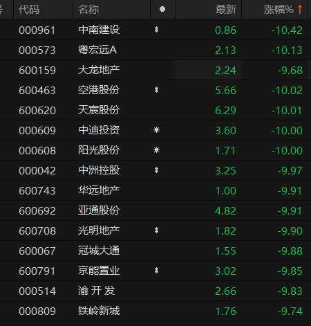 上证报中国证券网讯 2月7日午后,A股房地产板块继续走低。13时55分,中南建设、粤宏远A等多股跌停。