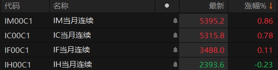 上证报中国证券网讯 2月28日早盘,股指期货多数上涨。9时36分,中证1000股指期货(IM)主力合约上涨0.86%,中证500股指期货(IC)主力合约上涨0.78%,沪深300股指期货(IF)主力合约上涨0.11%。