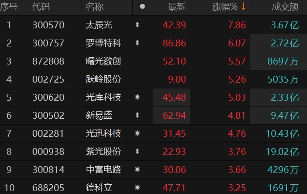 上证报中国证券网讯 3月1日,CPO概念股走高,截至9时41分,太辰光涨近8%,罗博特科、曙光数创、新易盛、光库科技、光迅科技等跟涨。