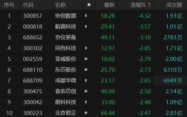 存储芯片板块走低 协创数据跌超4%