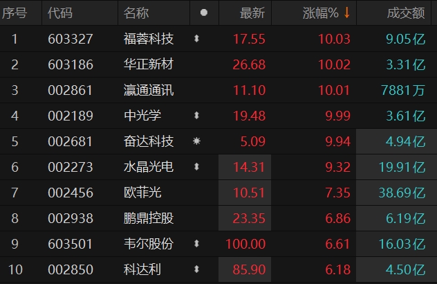 电子元器件板块表现抢眼 福蓉科技等多股涨停