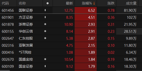 非银金融板块异动拉升 国联证券涨超6%