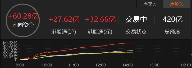 上证报中国证券网讯 3月21日14时12分,南向资金净流入超60亿港元,达到60.28亿港元。
