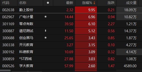 社会服务板块异动拉升 勤上股份涨停