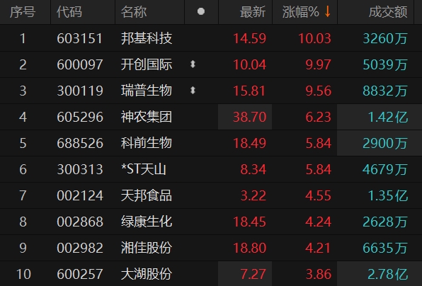 养殖业板块走高 开创国际涨停