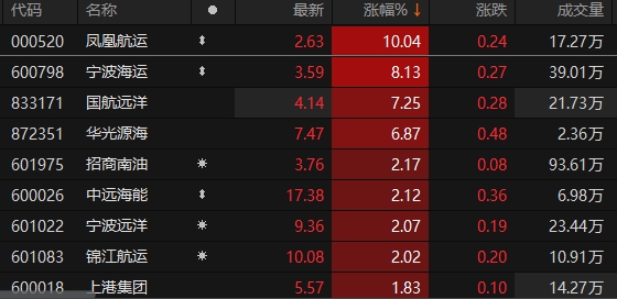 港口航运概念股异动拉升 凤凰航运涨停