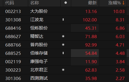 存储芯片板块震荡拉升 大为股份涨停