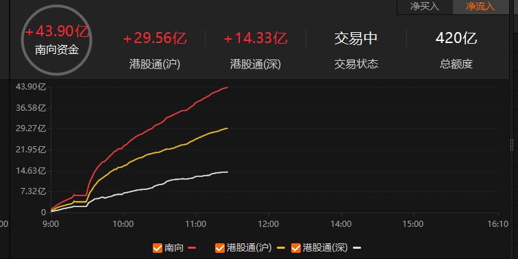 南向资金净流入超40亿港元