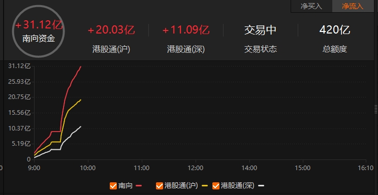 南向资金净流入超30亿港元