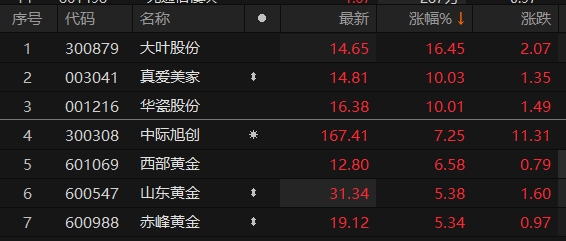 上证报中国证券网讯 4月8日早盘,贬值受益概念股表现活跃。截至10时5分,真爱美家、华瓷股份涨停,大叶股份涨超16%,中际旭创、西部黄金等跟涨。