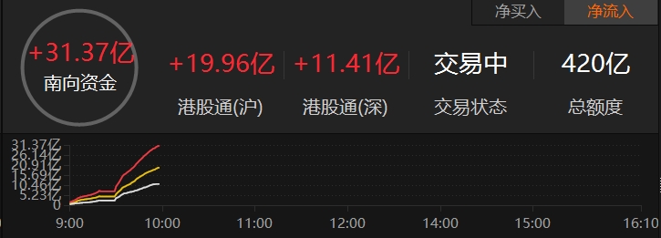南向资金净流入超30亿港元