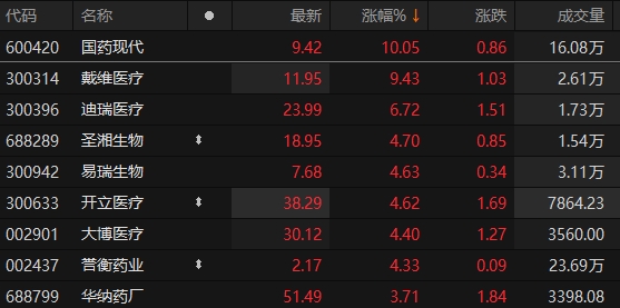 医药生物板块表现活跃 国药现代涨停