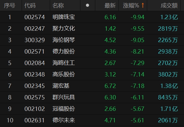 家用轻工板块震荡走低 明牌珠宝跌停