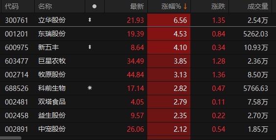 农林牧渔板块快速拉升 立华股份涨超6%