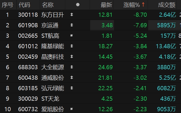 上证报中国证券网讯 4月30日,光伏板块走低,截至9时42分,东方日升跌近9%,隆基绿能、晶澳科技、大全能源、通威股份等跟跌。