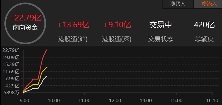 南向资金净流入超20亿港元