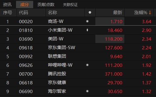 恒生科技指数转涨 小米集团、美团等多股涨超2%