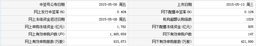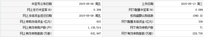 事件:公司拟于2015年5月5日在深圳证券交易所发行新股。