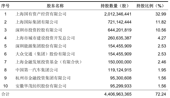 另外,华茂股份持有9529.99万股、锦江投资持有6178.24万股、海通证券100%持有的海通开元拥有3740.85万股、大冷股份3009.89万股、交大昂立2191.83万股、泸州老窖1177.7万股、上海机电1030.49万股持股均超过了1000万股。