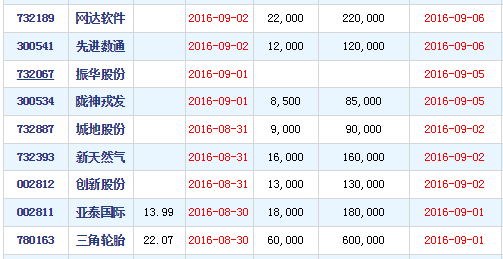 本周9只新股分别为亚泰国际、三角轮胎、创新股份、新天然气、城地股份、陇神戎发、振华股份、先进数通、网达软件。