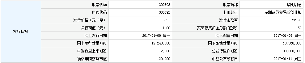 华凯创意1月9日发行 申购上限1.2万股